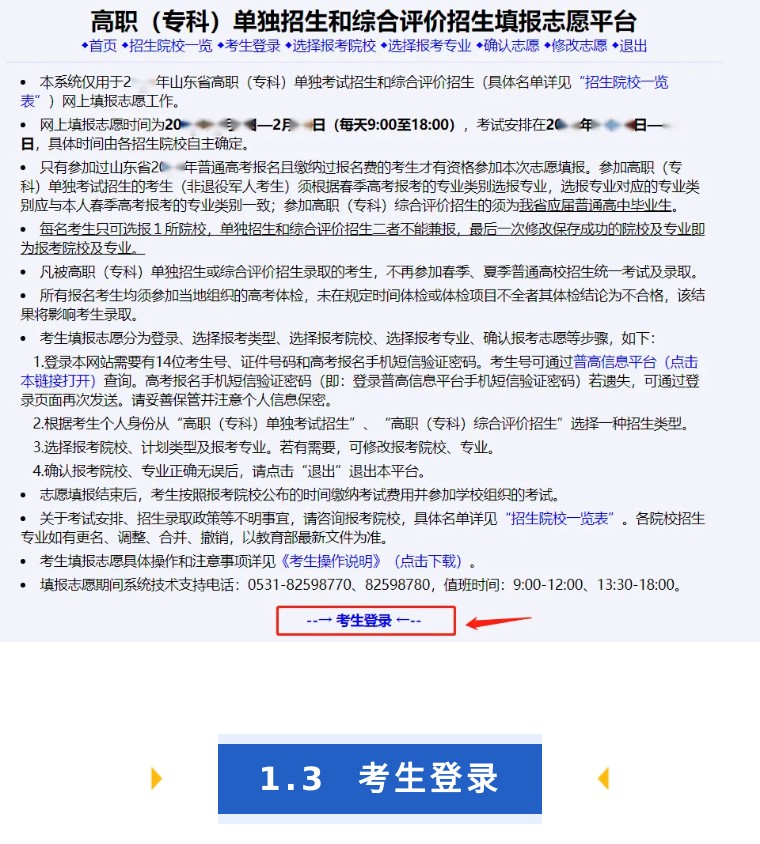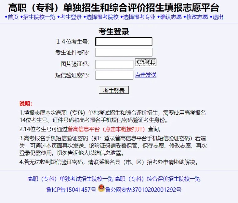 通过省招考院网站或招生院校网站链接,打开“高职(专科) 单独招生和综合评价招生填报志愿平台”主页,如下图:
