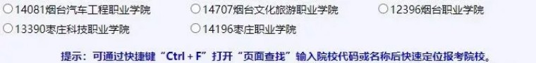 这里按院校名称顺序排列显示所有招生院校。因院校数量较多,如上图提示:可通过快捷键“Ctrl+F”打开“页面查找”输入院校代码或名称后快速定位报考院校。