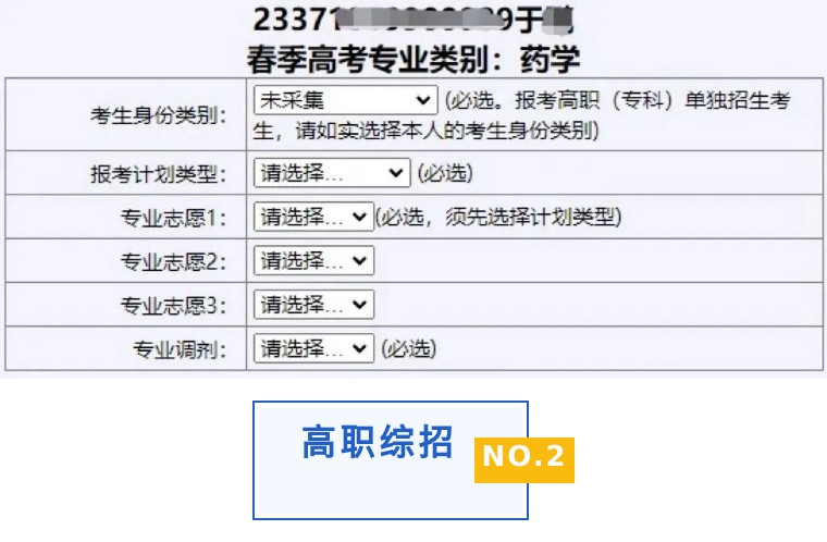 若考生报考高职(专科) 综合评价招生,其报考专业选择页面如下: