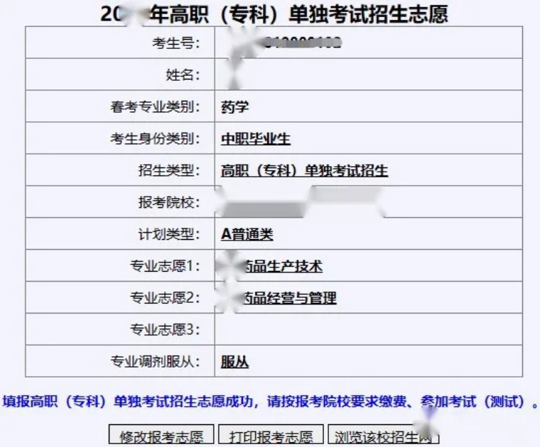 高中备考指南小编这里也特别提示考生:填报高职(专科) 单独考试招生(或综合评价招生) 志愿成功,请按报考院校要求缴费、参加考试(测试) 。还可点击“浏览该校招生网”打开院校招生网,了解招生、考试相关安排。