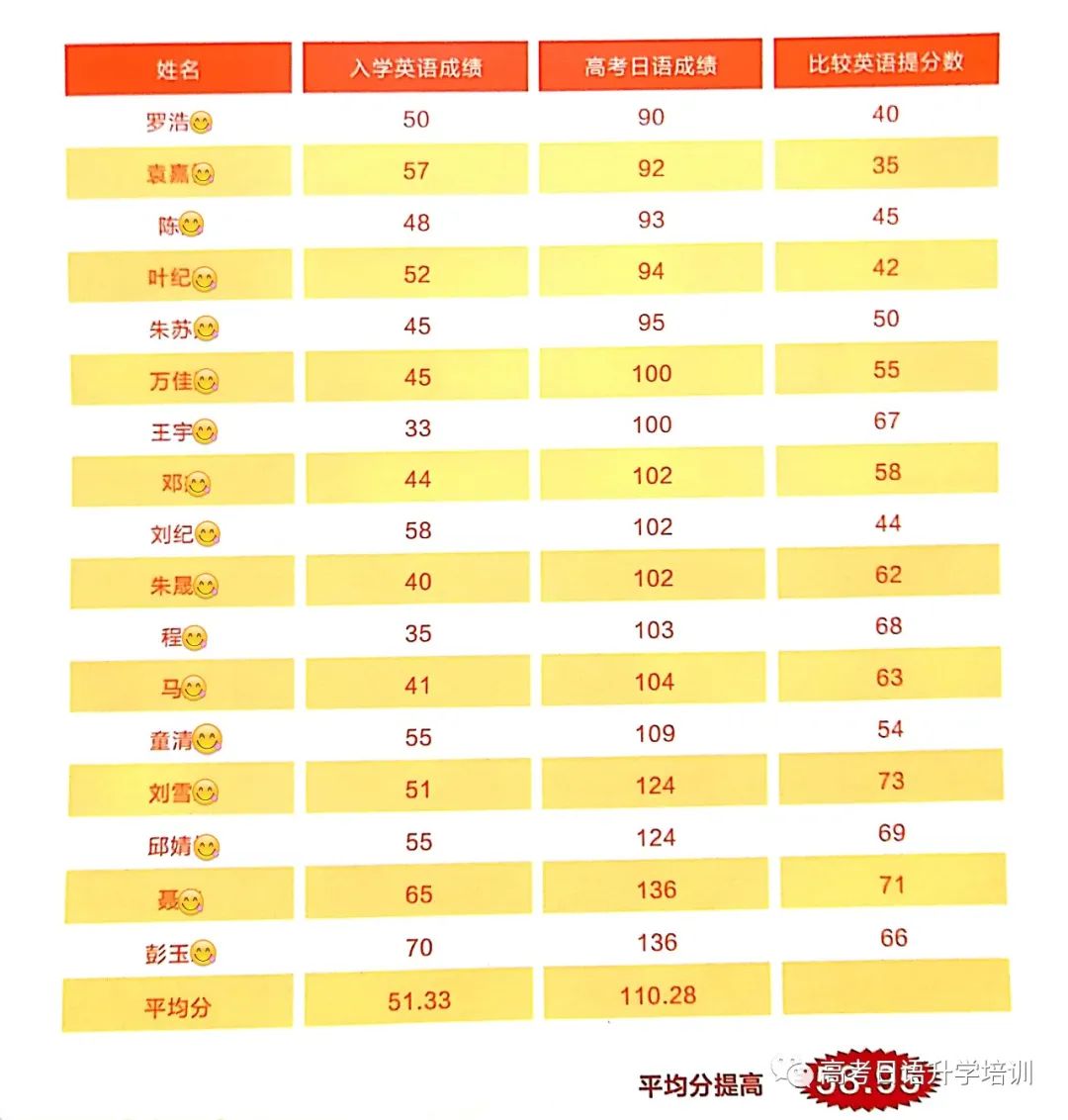 进班英语分在60分以下的学生,努力学习也可以达到100分-110分以上,高考日语成绩完全可以提高到100-120分。2年左右的日语学习就可以达到6年英语学习的效果,学习周期短。